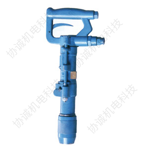 工程上常見的分類是按鑿巖機的支撐方式來分類的1、氣腿式鑿巖機這類鑿巖機的重量較輕,一般在25kg以下,工作時用手扶著操作。氣腿式鑿巖機可以打各種小直徑和較淺的炮孔。一般只打向下的孔和近于水平的孔。氣腿式鑿巖機由于它靠人力操作,勞動強度大,沖擊能和扭矩較小,鑿巖速度慢,現(xiàn)在地下礦山很少用它。屬于此類的鑿巖機有Y3、Y26等型號。